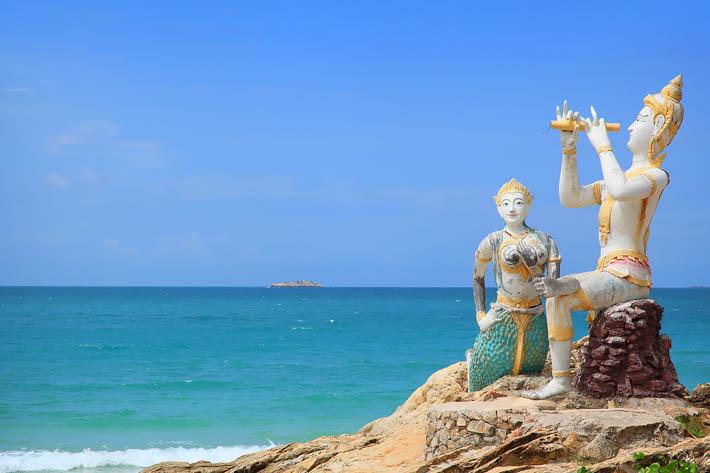 在钻石沙滩的南端有两座雕像,分别是王子和美人鱼,这并非安徒生童话中那个故事中的美人鱼和王子,而是Sunthron Phu所写作的泰国史诗文学《Phra Aphaimani》中的角色。故事讲述了一位美人鱼帮助被流放的王子逃离到了沙美岛,并且一起用魔笛打败了巨兽。