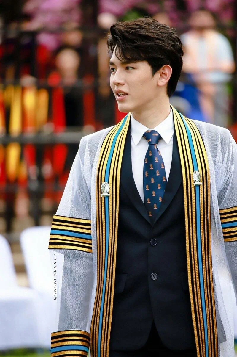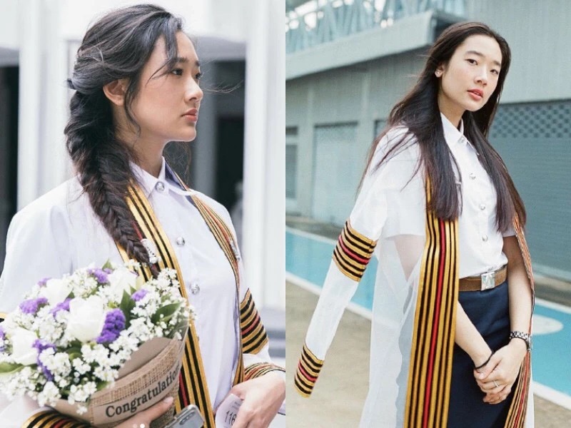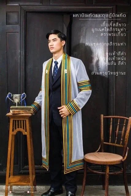 朱拉的毕业袍更是特别的让人一眼便认得出来,那一身白色长礼服,边缘饰有各种宽度相间的彩色带,不同的颜色和带的数量表示学位水平。