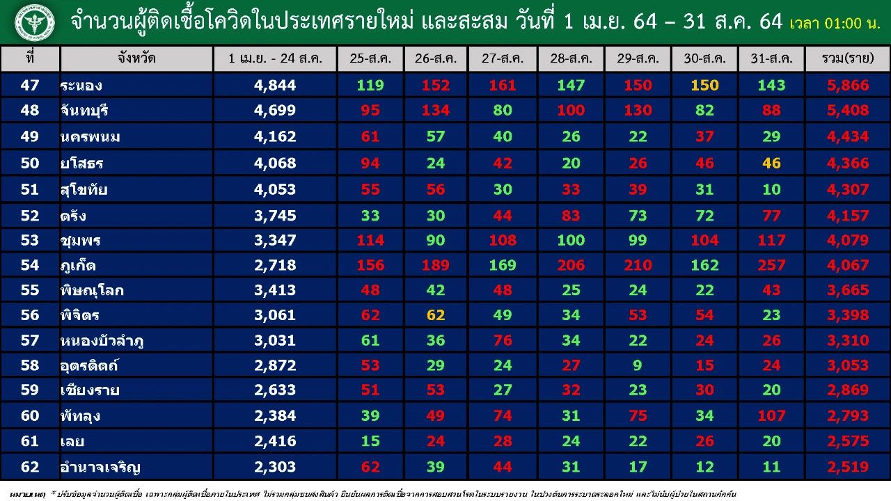 普吉府于8月25日起,每日新冠肺炎疾病确诊个案都超过百例,从当天的156例到隔日189例,接着169例、206例、210例、162例,以及8月最后一天的257例。