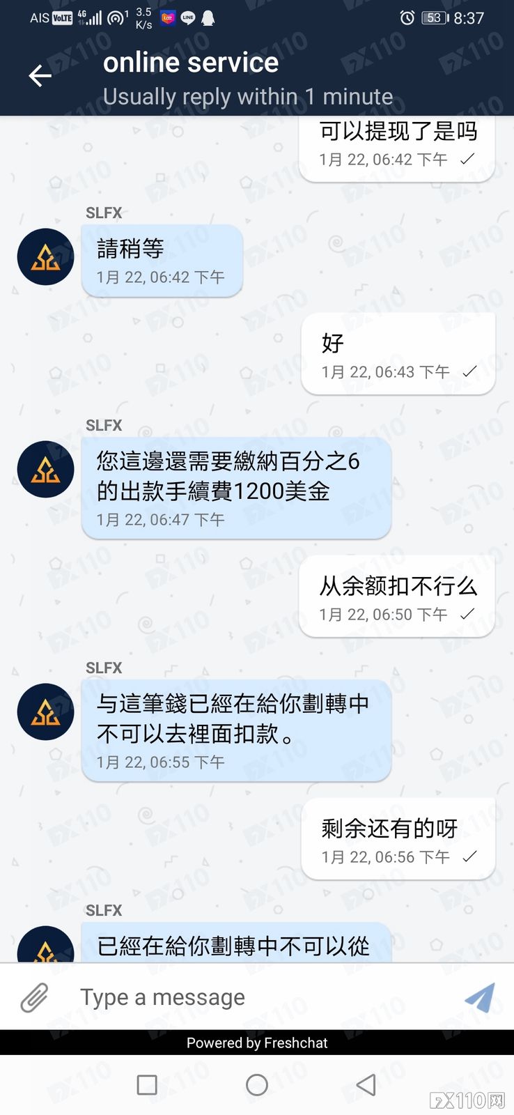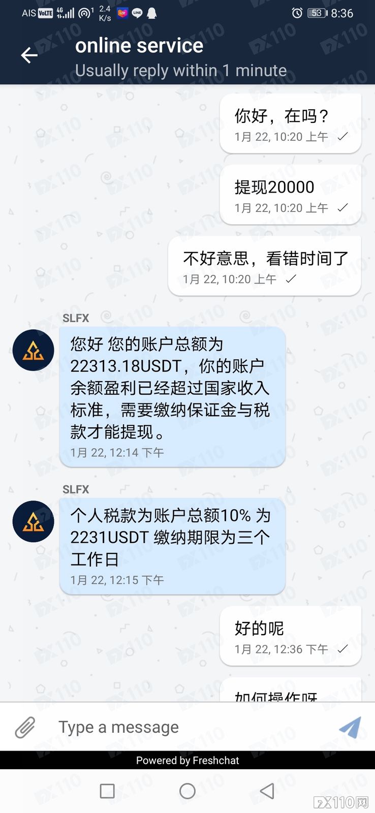 投资遇上黑平台,可谓盈利一时爽,出金两行泪。近日,FX110.com收到了一名来自泰国的网友C**4(后文简称C某)爆料,称其在黑平台SLFX交易,盈利至两万多美元时欲提现,却遭遇了一道又一道的出金关卡……
