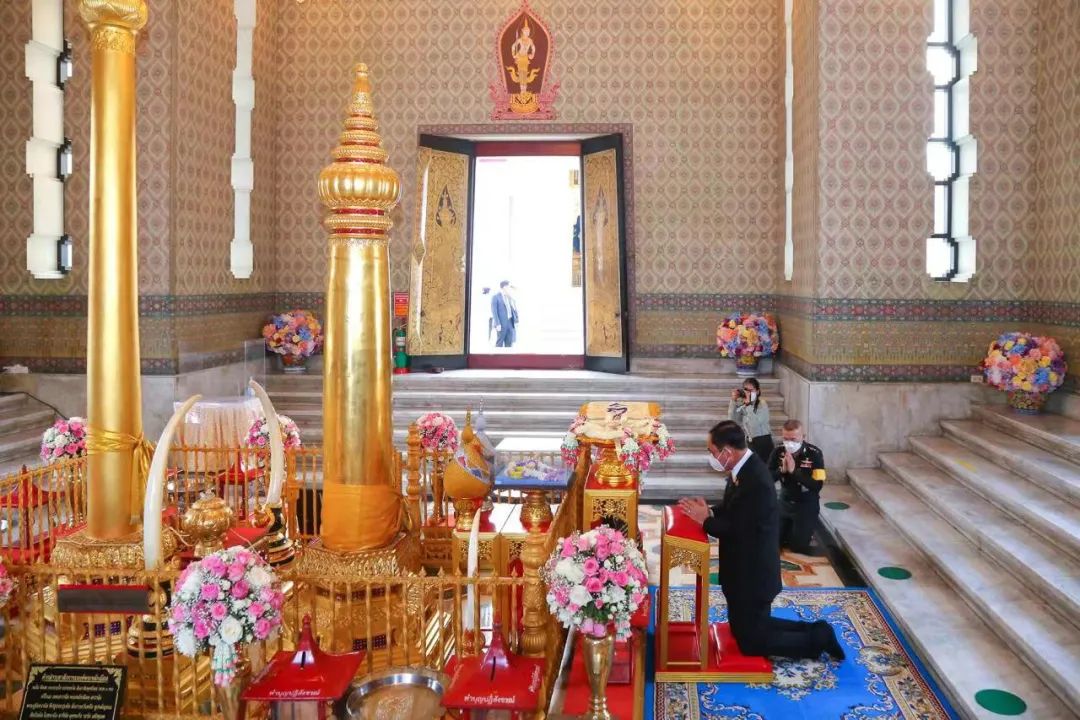 曼谷市迎来建都240周年,巴育总理21日前往曼谷城隍庙,主持祭拜国柱典礼,并迎请曼谷岱密佛寺方丈摩诃叻察蒙空穆尼法师主持诵经祭拜典礼。