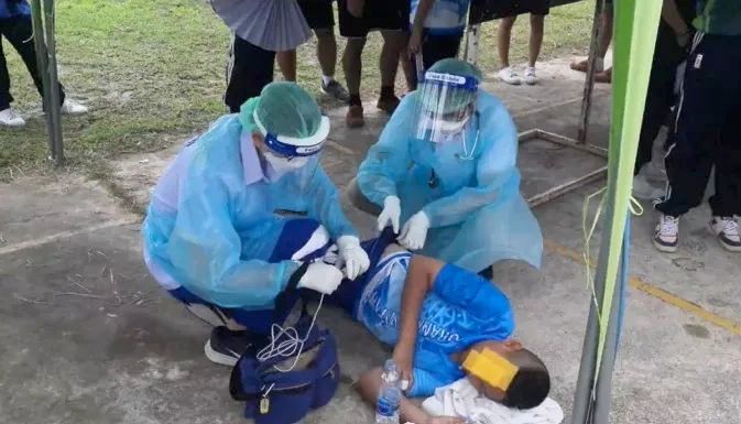 目击事件经过的56岁教师帕娜告诉警方,事发时学校正在举行颜色运动会比赛,当天上午大约11时40分,她正在担任排球比赛的裁判,两队的预备队员和运动员共计超过30人,旁边还有来加油的啦啦队,比赛过程中听到一声类似枪响声,她当时以为是学生敲打什么物体发出的声音,然而没一会就看到学生纷纷盯着受伤的男生看,她急忙从裁判台上下来查看。