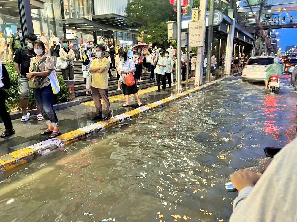 其他像是往朗四区方向的正瓦他纳路段也淹了32公分高;巴威区的西乌冬路和察楞帕拉奇拉玛九路被淹了30.7公分;正瓦他纳路出城方向淹水25公分;拉差达-叻抛路淹水23.4公分。