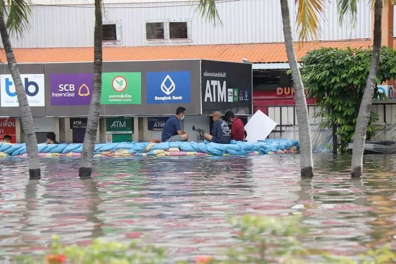 且泰媒12日最新报道,暖武里府的防水线已挡不住洪水,部分防洪墙体甚至在11日已经倒塌,造成拉玛五世桥和邻近社区都被积水覆盖。
