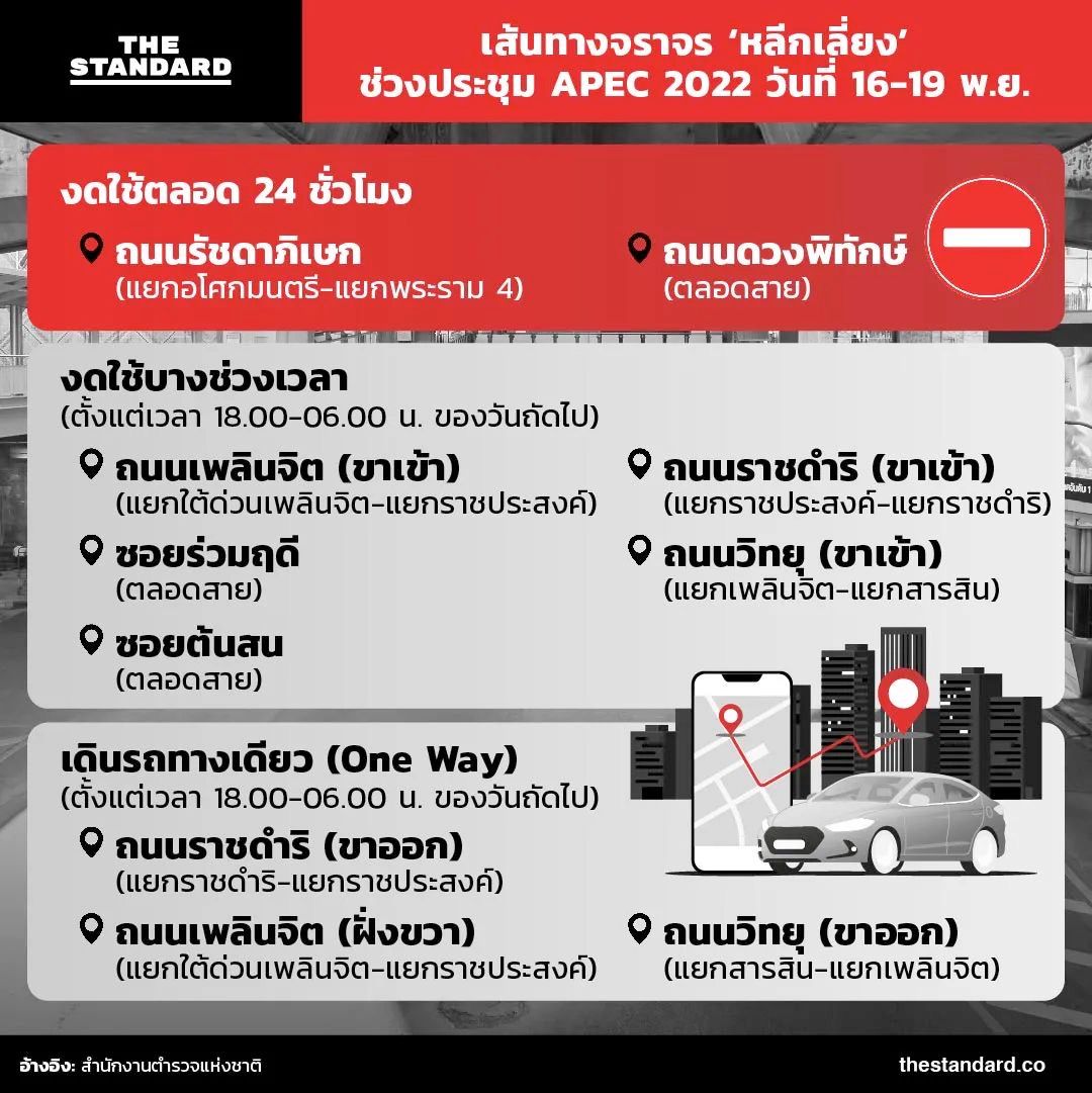 当局表示,此次峰会主要举办场地,曼谷「诗丽吉王后国家会议中心」(Queen Sirikit National Convention Center),附近道路在会议期间将不对外开放。捷运MRT系统照常行驶,但列车从16日到19日间将不会停靠同名车站。