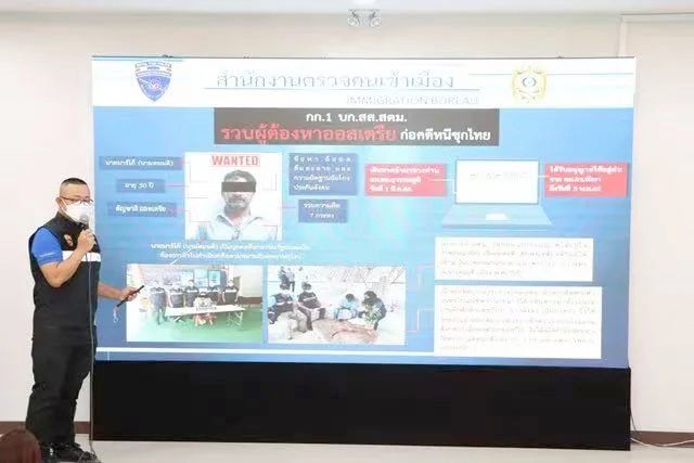11月4日,在泰国移民局办公室,移民局局长与移民局PTC警察工作人员一起召开了新闻发布会,公布了5起涉外犯罪案件的逮捕结果。
