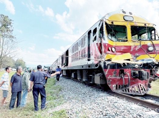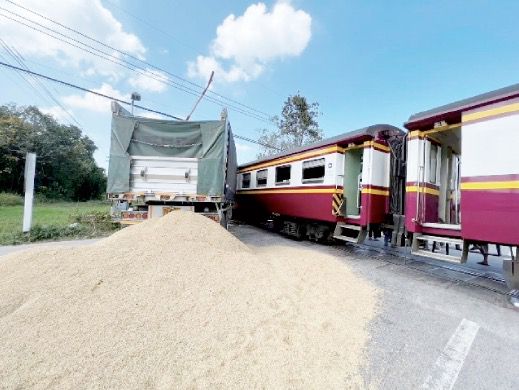 这是一列搭载有泰国和外国乘客的4501车次火车,有15节车厢,超过250名乘客,但在喃奔府时遇到一辆满载稻谷的18轮卡车,卡车闯过铁轨自动护栏后,火车刹车不及,和卡车猛烈撞击,火车车头严重凹陷,把车上的乘客吓得不轻。
