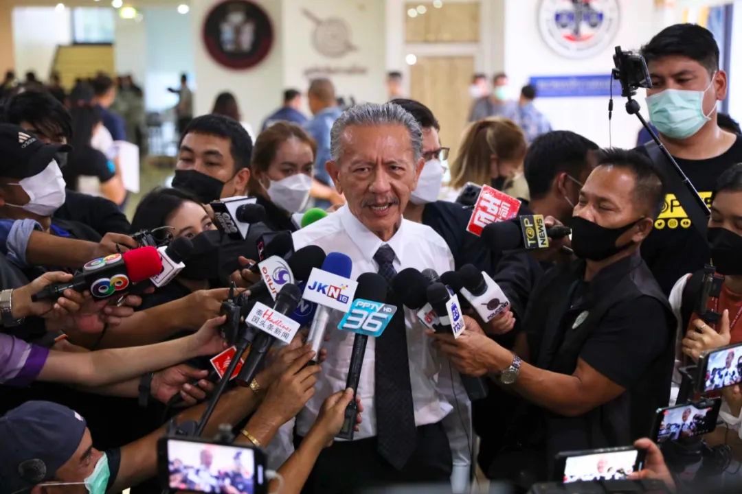 到了23日下午一点,杜浩本尊终于现身,在一队知名律师的陪同下,共同向泰国警总署副署长素拉切“报到”。
