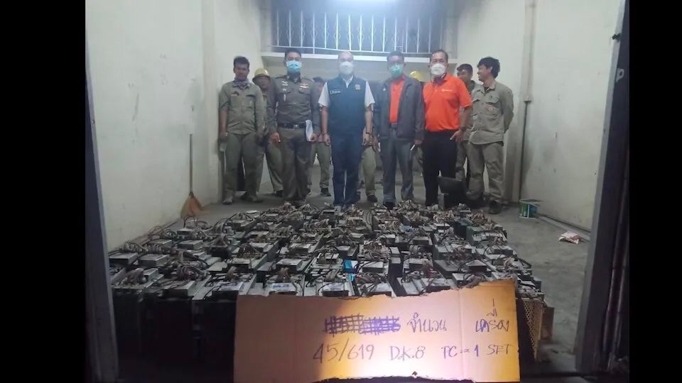 电力局和司法部特别案件调查厅本月7日宣布,在曼谷郊区查获41处非法盗电设立数字货币挖矿作业的据点,查获得3500多台挖矿电脑设备,这些挖矿中心全都是盗用电力,而电力局查获时已很迟,损失电费论亿铢。