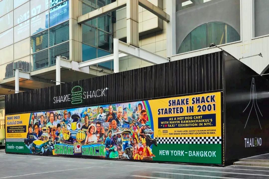 Shake Shack本月初在官方脸书粉丝页公开店面布置最新照片,看到在尚泰世界(Central World)广场北侧,早前原为伊势丹百货(Isetan)的1楼已架起黑色围栏,且挂起一幅以「计程车」为主题的大型壁画。